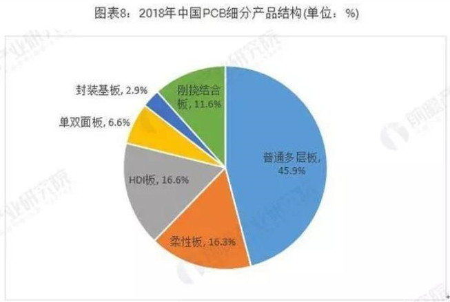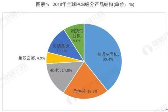 根據(jù)Prismark的統(tǒng)計,2018年全球PCB細分產(chǎn)品的市場結(jié)構如下: